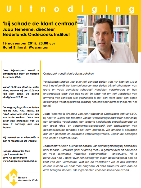 Hij zette uiteen hoe de praktijk keer op keer bewijst hoe belangrijk het is dat onze verzekerden in geval van een calamiteit worden bijgestaan door een contra-expert die op gelijke voet staat met de door de verzekeraar ingeschakelde expert.